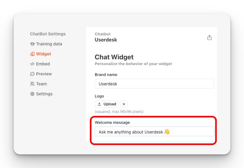 To configure it, go to your [Chatbot page](https://userdesk.io).\